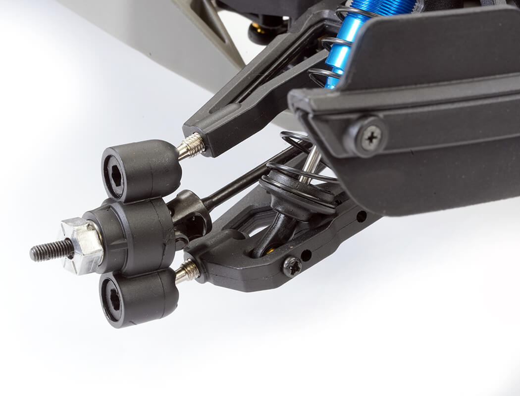 Pivot ball suspension with adjustable turnbuckles, provides tunabilty should you wish and front CVA driveshafts and metal geared differentials front and rear provide reliable service.